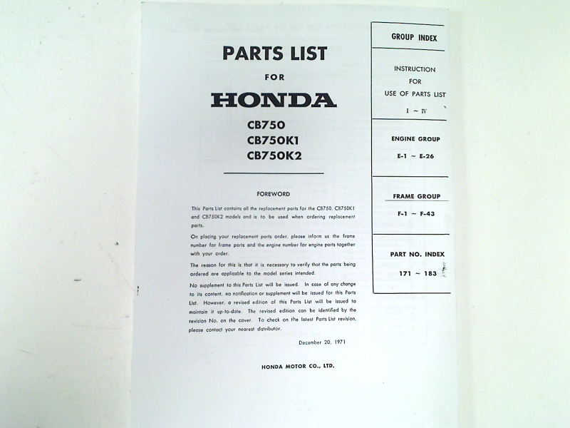 | Model | CB 750 K1 1970 |